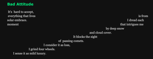 Michael Igoe, city boy, neurodiverse, Chicago now Boston, instructor in Psych Rehab at Boston University. Numerous works appear in journals online and print. Recent: The Blue Nib, Mineral Lit, Anser Journal and Avalanches In Poetry; National Library Of Poetry Editors Choice 1997. Check out Michael’s blog here. Twitter: MichaelIgoe5. Urban Realism/Surrealism. “I like the night.”